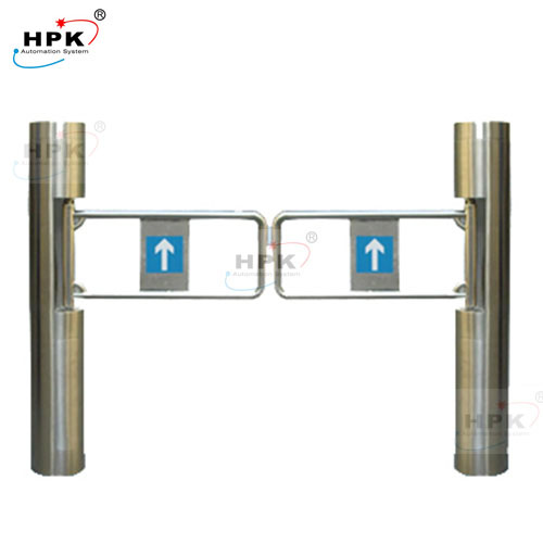 The horizontal bi - diirecttiional movement of the arm allows patrons to pass smoothly through the ADA swing gates